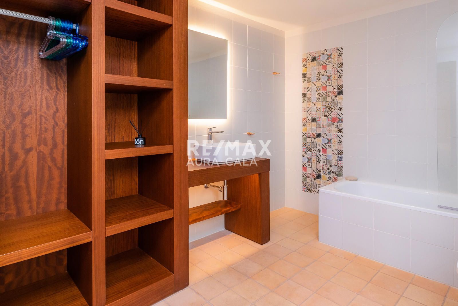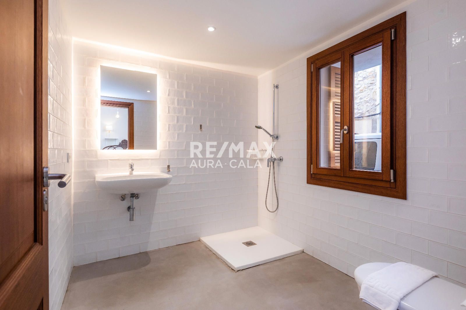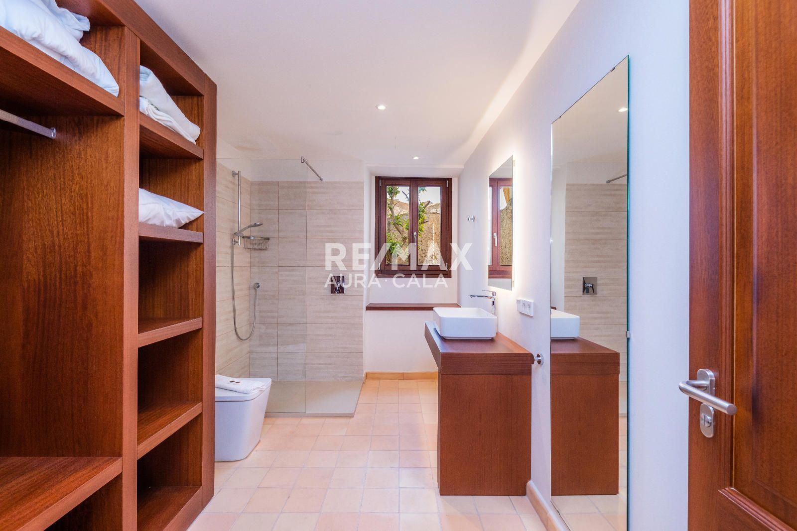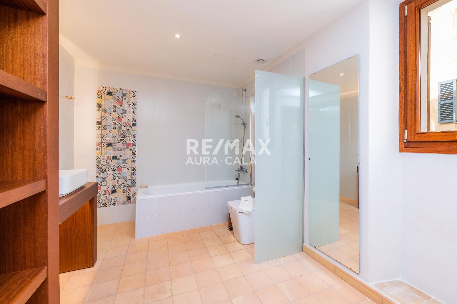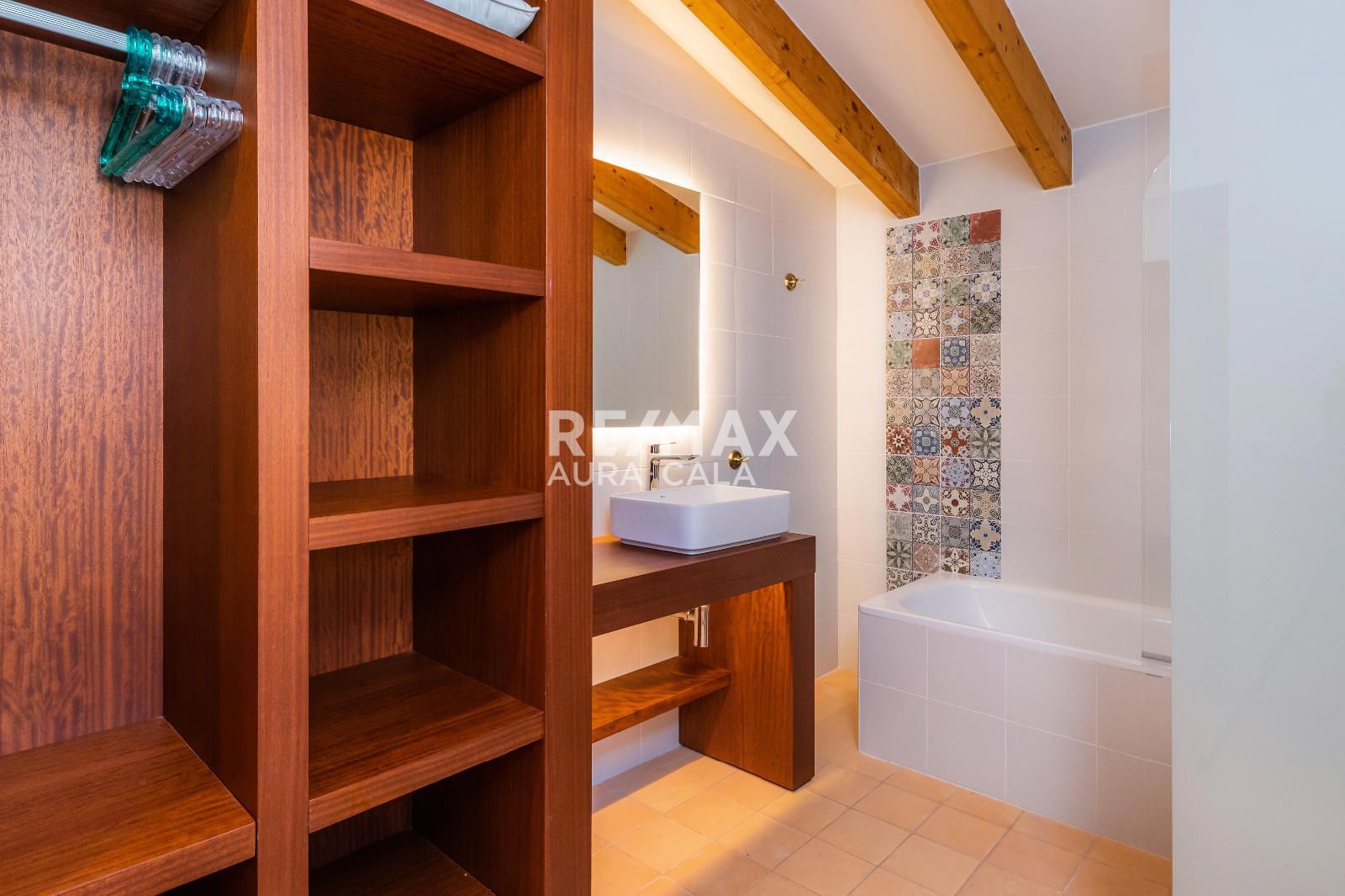 Subiendo las escaleras, en un nivel intermedio, encontramos el dormitorio principal con baño en suite, con una bonita bañera y también ducha. En el primer piso tenemos dos dormitorios dobles con baño en suite, uno con bañera y el otro con ducha. En la segunda planta tenemos la misma distribución que en la primera planta con dos dormitorios y dos baños en suite y además acceso a una terraza con vistas sobre el pueblo de Artà.