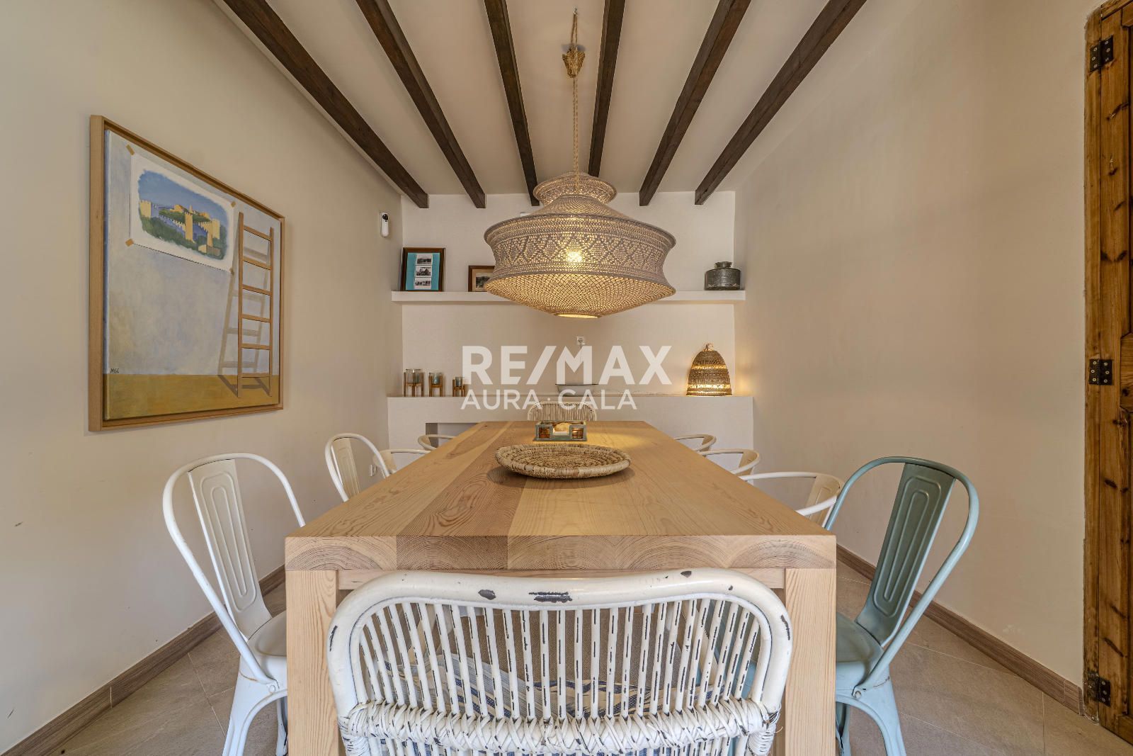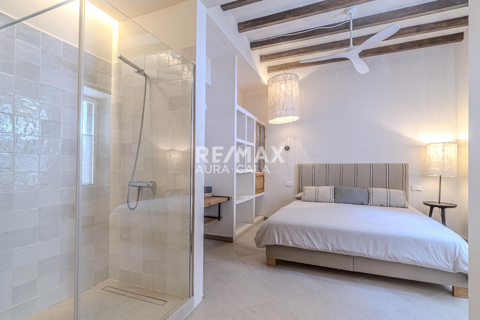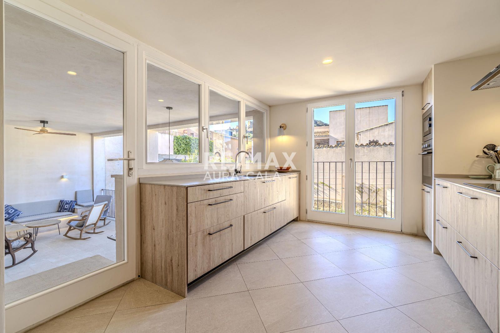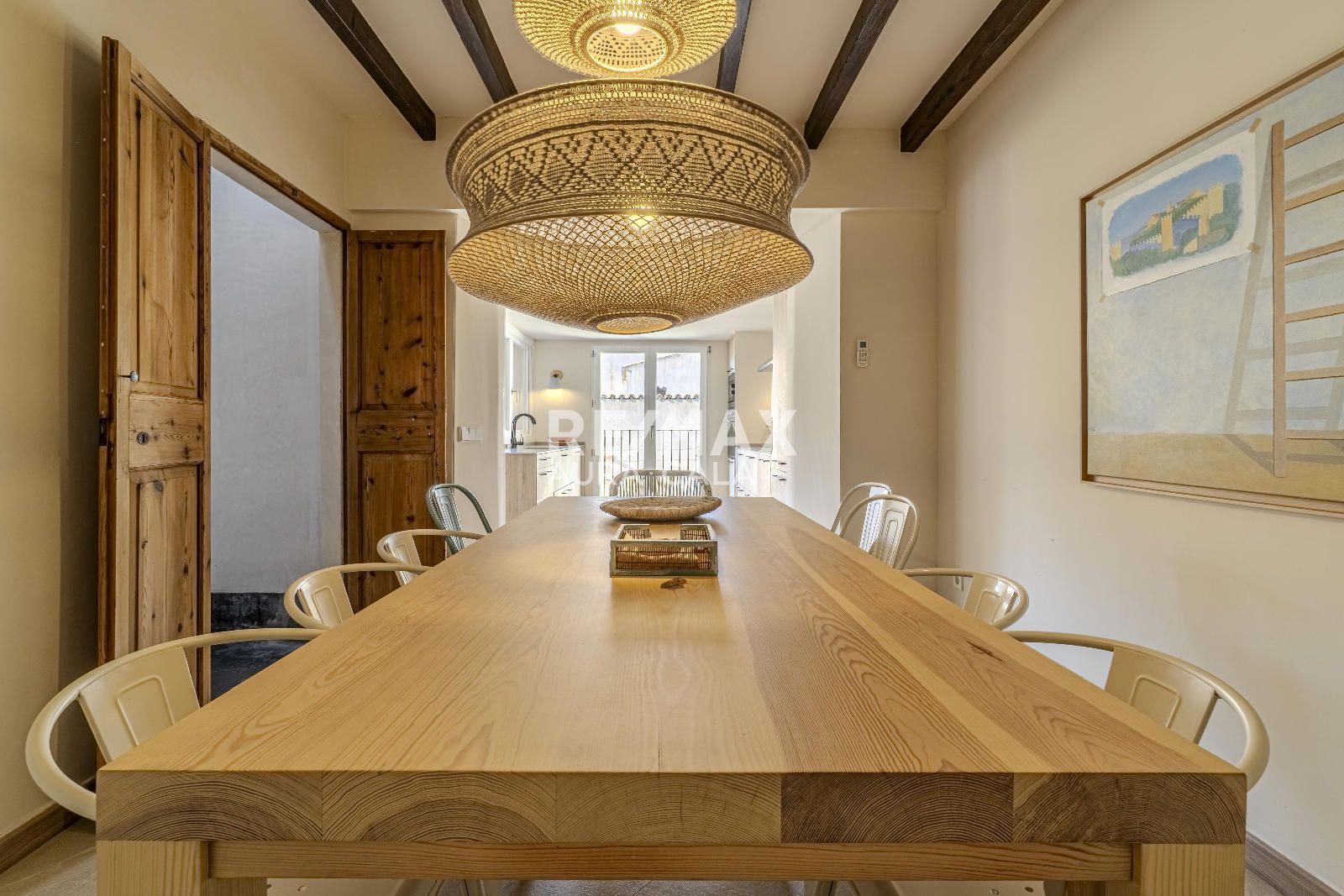 El exterior eleva aún más la experiencia: un jardín privado con piscina, zona de descanso, porche y cocina exterior con barbacoa crean un auténtico oasis en pleno centro del pueblo, combinando privacidad y estilo de vida mediterráneo.
