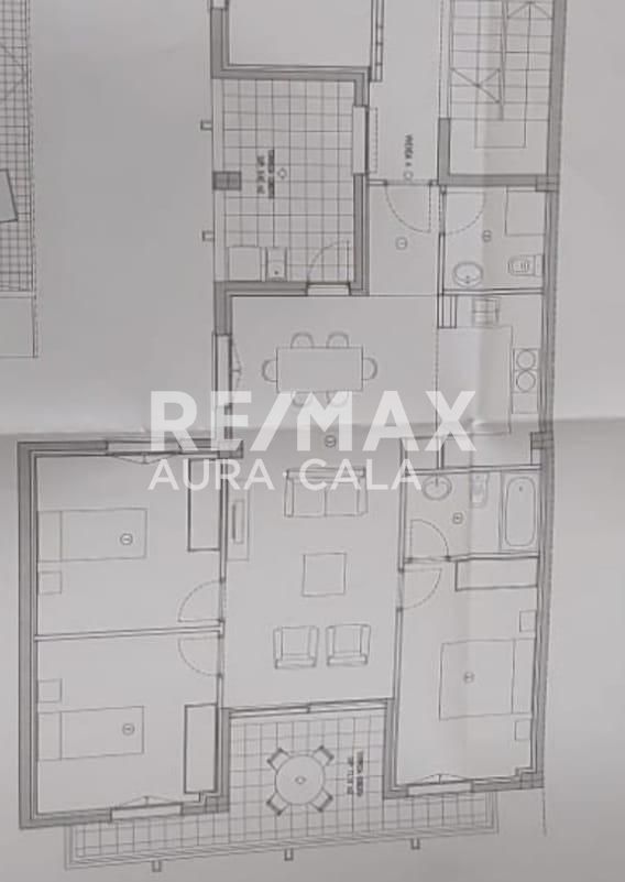 Apartamento de 100m2 con 3 habitaciones dobles una con baño en suite, cocina semi-integrada con salon comedor y salida a terraza balcon de 21m2 y lavanderia independiente.