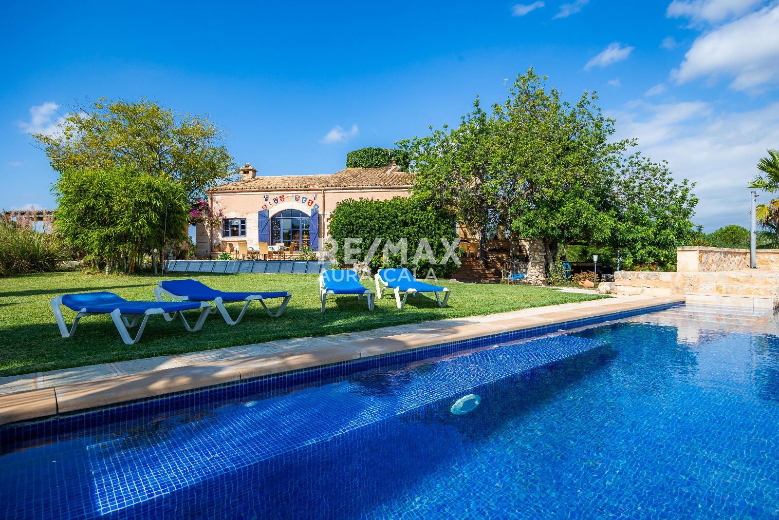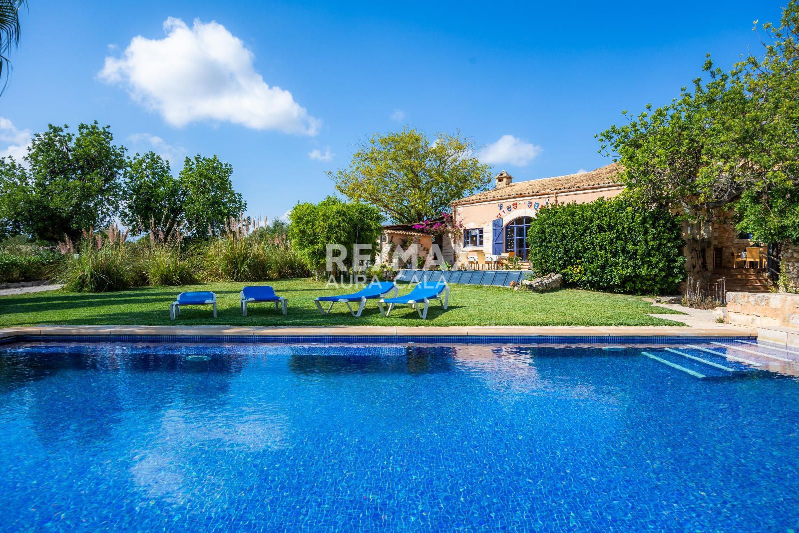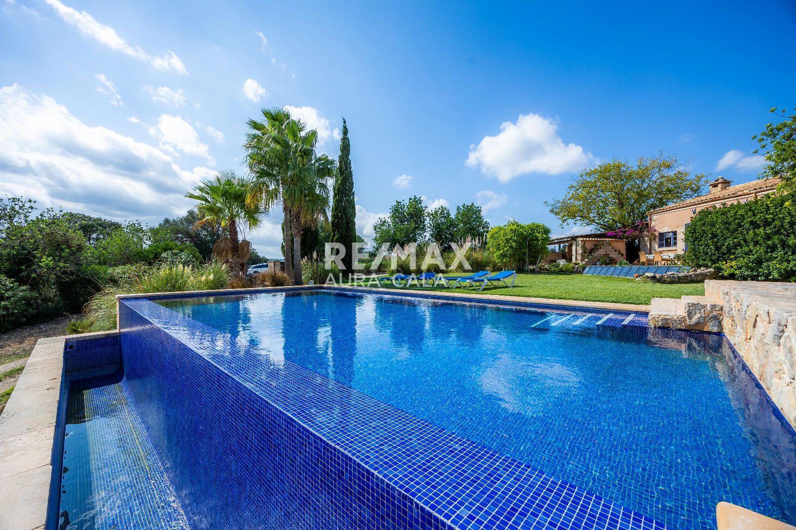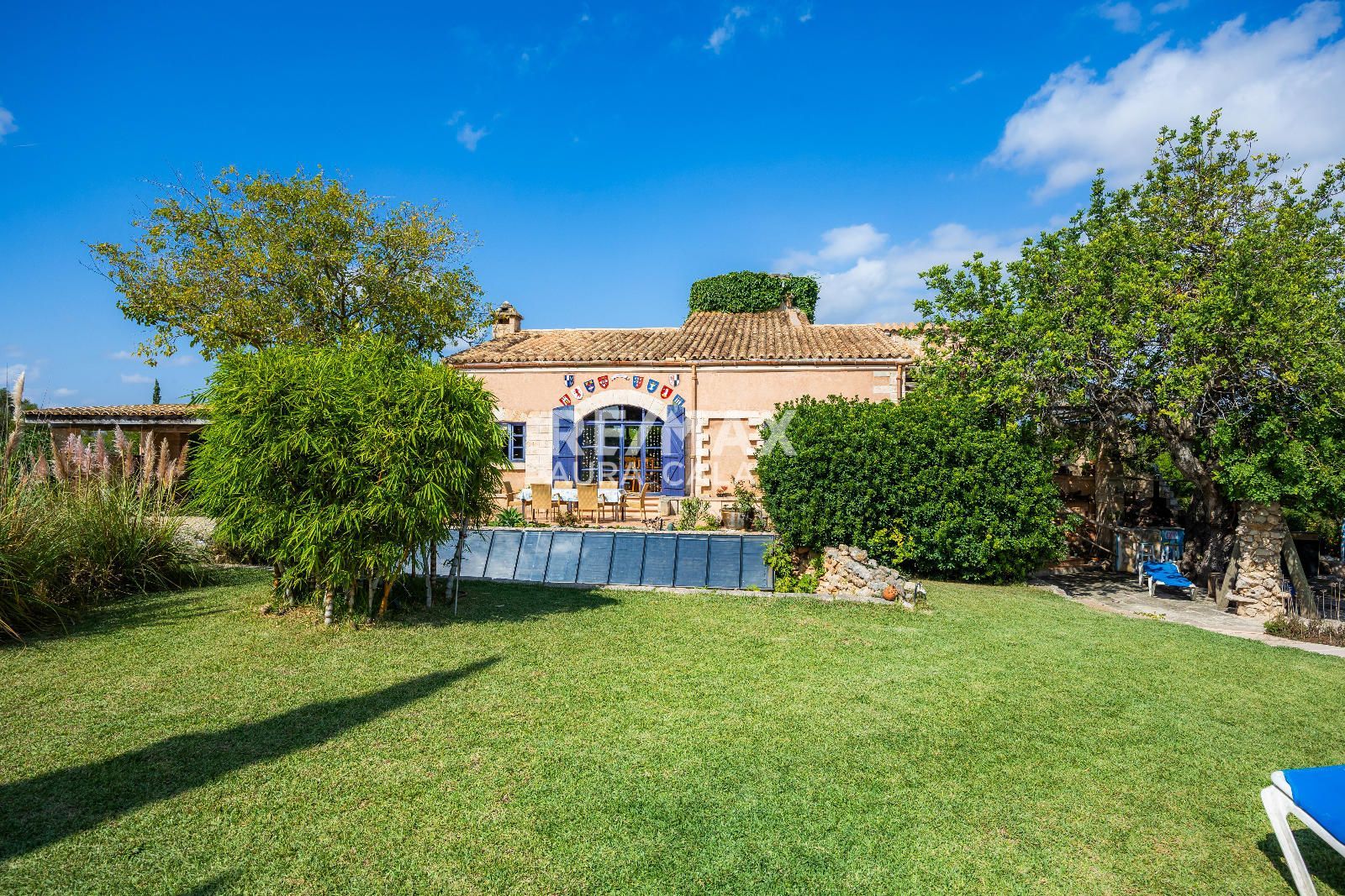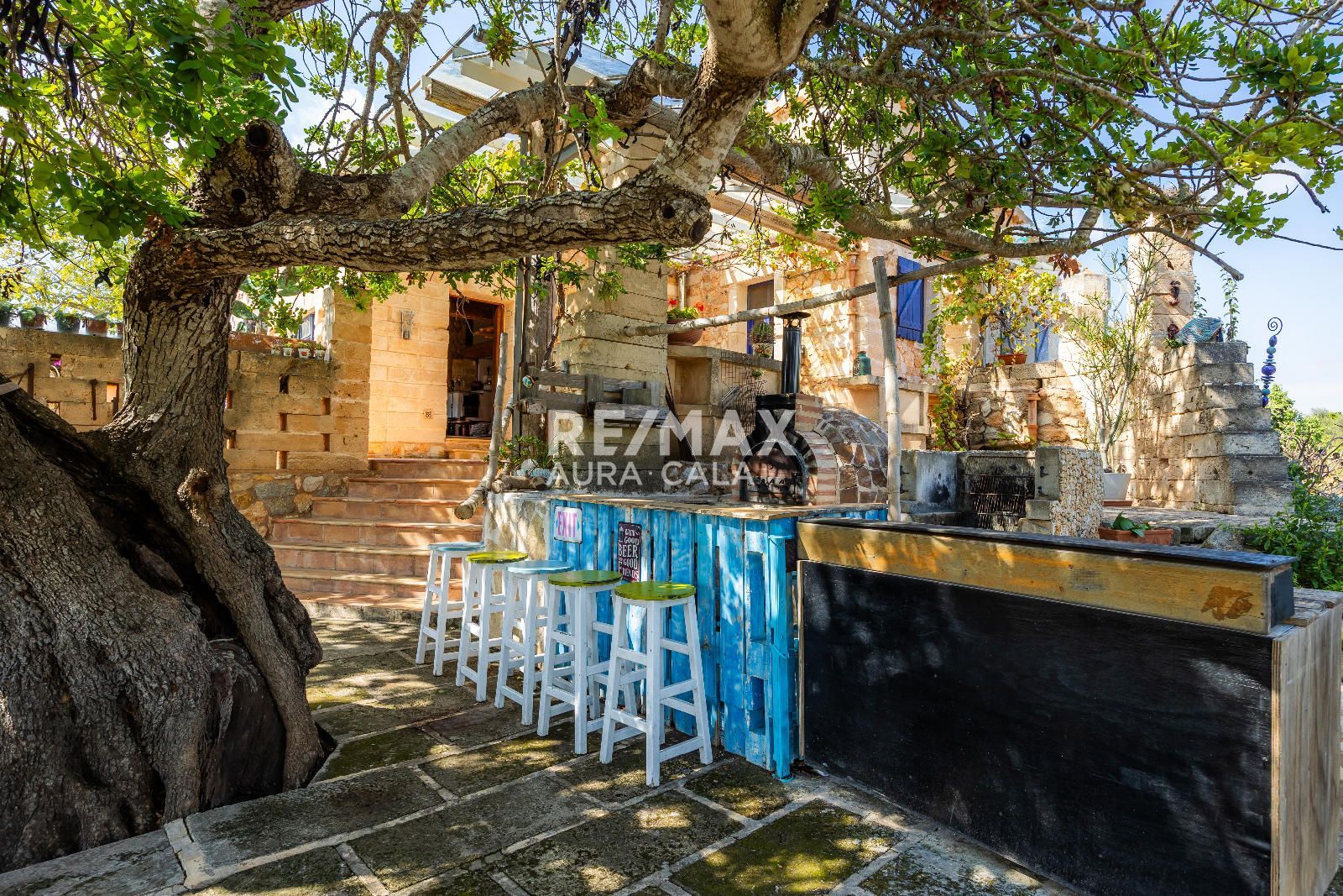 El exterior ha sido diseñado para el máximo disfrute y relax: piscina infinita climatizada con vistas al horizonte, zonas ajardinadas con riego automático, amplias terrazas soleadas y un bar con horno de leña, ideal para reuniones con familia y amigos. Bajo la sombra de un algarrobo centenario, se encuentra un rincón perfecto para desconectar y disfrutar de la tranquilidad.